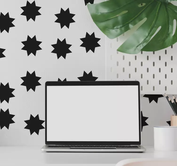 Obdivujte jedinečný dizajn našej Geometrickej nálepky Čierne hviezdne tvary. Tento moderný a jednoduchý produkt je skvelým spôsobom, ako pridávať na vašich stenách geometrické prvky. Vytvorte si atmosféru plnú hviezd a elegancie, ktorá osvieži každú miestnosť. S jeho čiernymi hviezdami sa váš interiér premení na jedinečné umelecké dielo!