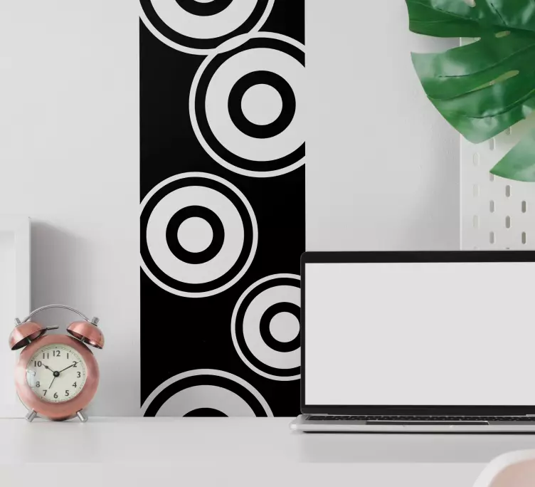 Naša Hranica na stenu odvážne kruhové vzory je moderným a minimalistickým doplnkom, ktorý premení každý priestor na štýlové miesto. Dizajn plný kruhov a geometrických tvarov v čiernej a bielej farbe dodáva interiéru elegantný vzhľad a vyžaruje odvážny charakter. Tieto hranice sú ideálne pre tých, ktorí hľadajú jedinečný spôsob, ako oživiť steny svojho domova alebo kancelárie.