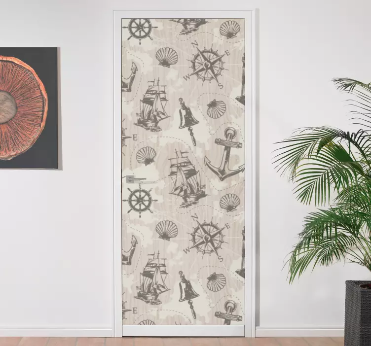 Vstúpte do sveta námorných dobrodružstiev s našou nálepkou na dvere s námorným dobrodružstvom! Tento úžasný grafický dizajn zachytáva všetko, čo súvisí s morom. S ilustráciami kotiev, drevených dosiek, kompasov a mušlí, táto nálepka vám prinesie pocit plachtenia a objavovania. Vytvorené s ohľadom na detaily, dizajn aj farby sú navrhnuté tak, aby boli svieže a atraktívne. Nechajte sa uniesť atmosférou pláže a majákov priamo vo vašom domove!