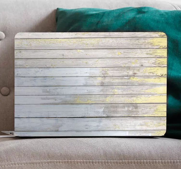 Nálepka na notebook s rustikálnym dreveným vzhľadom ponúka jedinečný design, ktorý na prvý pohľad zaujme svojím rustikálnym vzhľadom, pripomínajúcim zvetrané drevo. Jej textúra evokuje prírodné drevené dosky, pričom žltá a biela farba vytvárajú harmonický kontrast, ktorý osvieži váš laptop a zároveň mu dodá osobitý šarm!