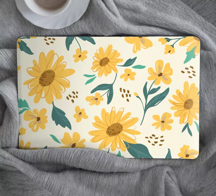 Predstavujeme Vám našu nálepku na notebook veselý kvetinový vzor, ktorá osvieži Váš laptop a dodá mu jedinečný charakter! Tento úžasný dizajn obsahuje nádherné slnečnice a ilustrácie kvetov v žiarivej žltej farbe, ktorá evokuje prírodu a radosť. Kvetinový motív je ideálny pre tých, ktorí milujú estetiku a chcú, aby ich zariadenie vyžarovalo pozitívnu energiu a veselú atmosféru.
