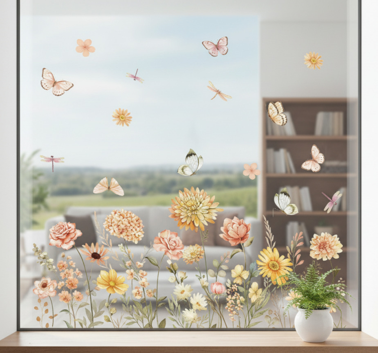 Nálepka na okno kvetinová lúka s motýľmi