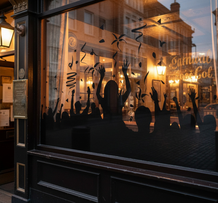 Nálepka na výklady oslavujúci karnevalový dav