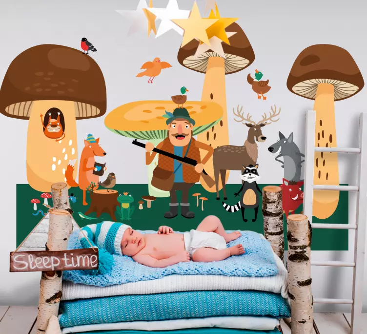 Referencia: A49201Pôvabná scéna s rôznymi hravými zvieratami v lesnom prostredí. To zahŕňa čarovné huby a veselú postavu, ktorá sa zapája do interakcie s divokou zverou. Ideálne na vytvorenie magickej atmosféry v detských priestoroch, podporujúcej fantáziu a lásku k prírode.