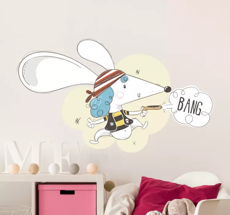 Objavte svet zábavy s našou nálepkou pre deti dobrodružstvo pirátskej myšky! Tento hravý a priateľský dizajn, ktorý zobrazuje veselú myšku v pirátskom kostýme, je obohatený o nádherné ilustrácie a karikatúry. Deti sa určite nadchnú a ich izba sa premení na miesto plné dobrodružstva a fantázie!
