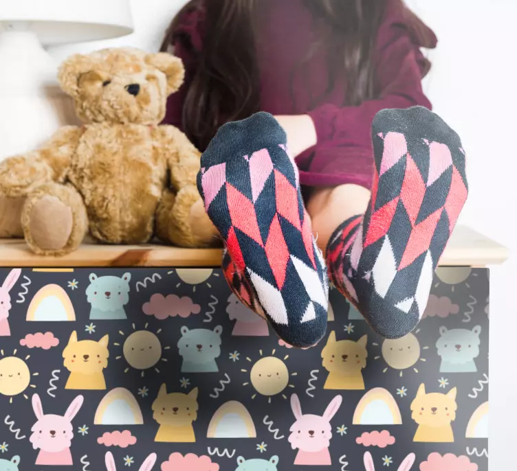 Naša nálepka pre deti roztomilé tvory a ich štýly je skutočným umeleckým dielom, ktoré oživí každý detský priestor! Dizajn kombinuje zábavné a hravé prvky, ako sú zvieratká, dúhy a karikatúry, ktoré poskytnú deťom pocit radosti a dobrodružstva. Pestré farby a rozmanité postavy zaručujú, že deti budú nadšené z každého detailu, a nálepka skvele zapadne aj do nábytku v ich izbičke.