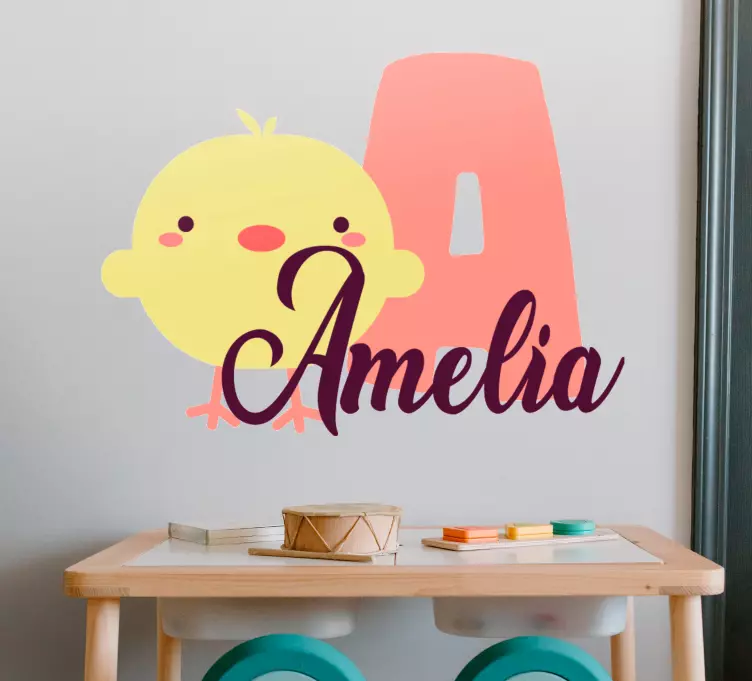 Referencia: A48924Pôvabný dizajn kuriatka zobrazuje priateľské žlté kuriatko spolu s farebnou iniciálou a prispôsobiteľným menom. Tento hravý prvok je ideálny na vytvorenie príjemnej atmosféry v detskom priestore, pričom pridáva teplo a individualitu do ich izby.