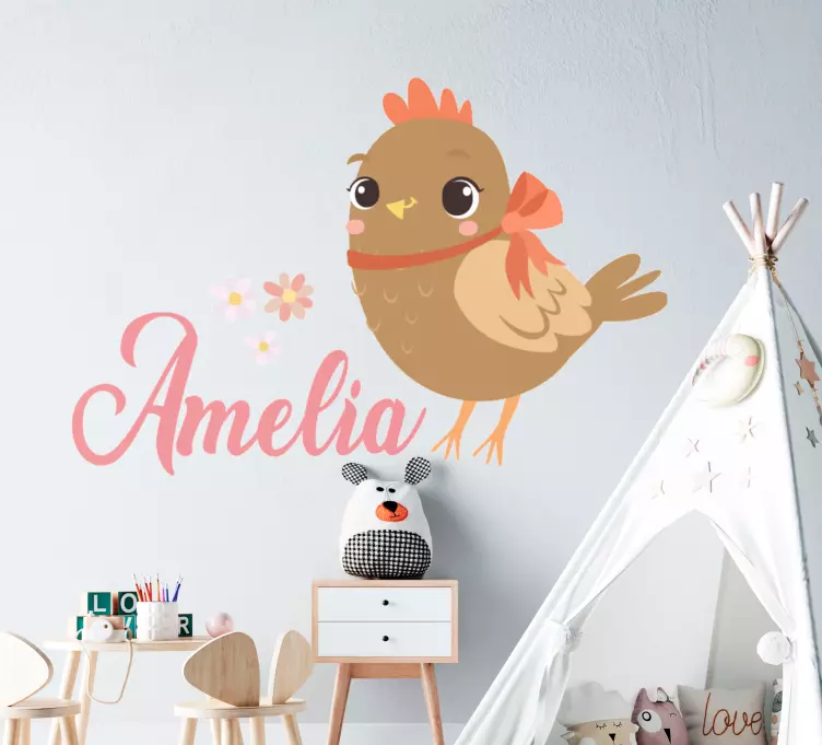 Referencia: A48923Pôvabná reprezentácia vtáka s mašľou, obklopeného malými kvetmi. Tento hravý dizajn je ideálny na personalizáciu detského priestoru, pridáva nádych tepla a radosti do akéhokoľvek prostredia. Postava vyvoláva pocity živosti a nevinnosti.