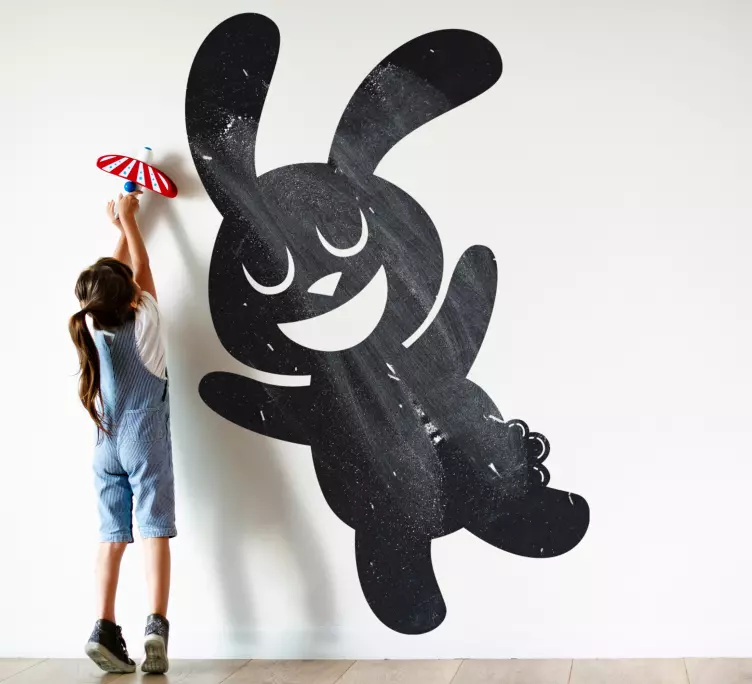 Nálepka tabuľu nálepka tabuľu radosný zajko je ideálna nielen na stenu, ale aj na akýkoľvek rovný povrch. V našom internetovom obchode ponúkame kvalitné a jedinečné produkty, ktoré vyrobené na zákazku spĺňajú vaše predstavy. S našou nálepkou môžete ľahko pridať farebnosť a hravosť do akéhokoľvek priestoru vo vašej domácnosti!