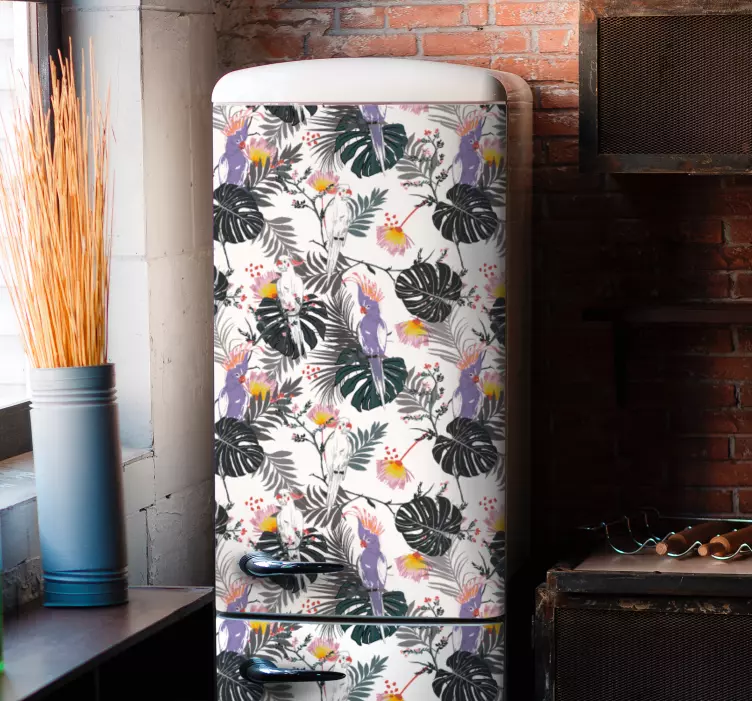 Objavte krásu našej nálepky zvierat s tropickým kvetinovým vzorom, ktorá oživí vašu chladničku a pridá do vášho domova nádych tropickej prírody! Tento jedinečný dizajn zahŕňa pestré listy, papagáje a kakadu, ktoré sú zasadené v zelenej scenérii plnej života. Vtáky v kombinácii s kvetinovým vzorom vytvárajú veselú atmosféru, ktorá vás prenesie do exotického prostredia, priamo do srdca tropických lesov.