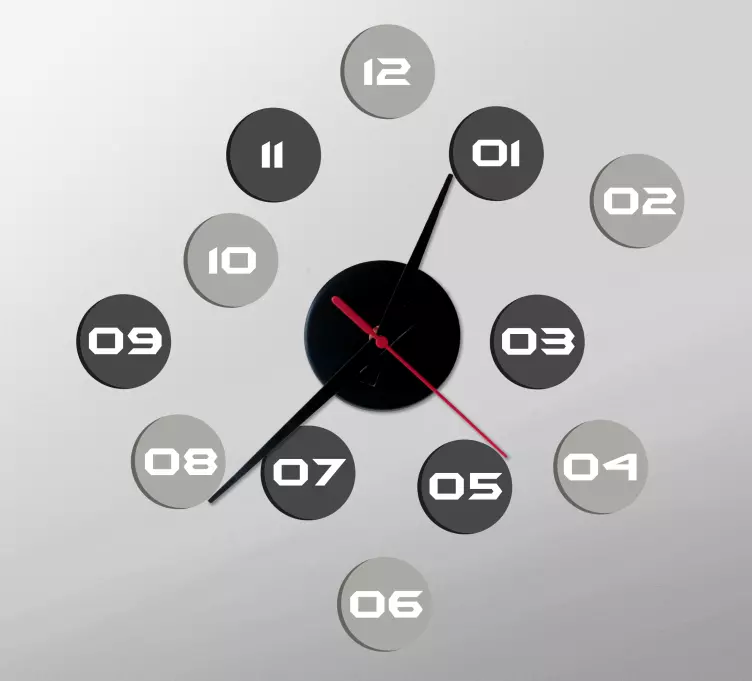 Naše nálepkové hodiny moderný kruhový časomerič sú dokonalým spojením minimalistického a geometrického dizajnu. S ich modernými krúhmi a jasnými číslami sa hodiny stávajú nielen praktickým prvkom, ale aj štýlovou dekoráciou vašich stien. Tento produkt je navrhnutý tak, aby dokonale doplnil každý interiér a stal sa stredobodom pozornosti vo vašich priestoroch!