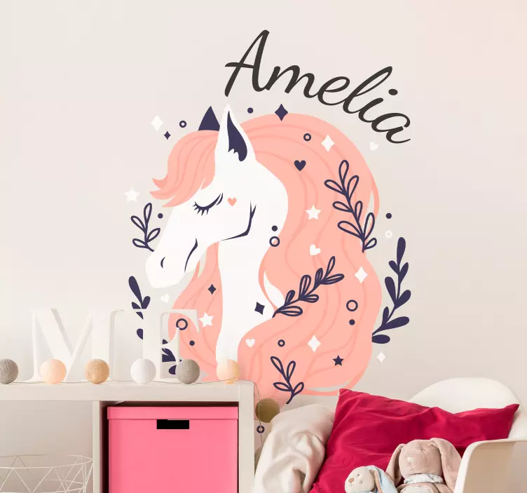Objavte čarovný svet s našou nálepku s personalizovanou ilustráciou jednorožca! Tento roztomilý dizajn zachytáva krásu kvetinového motívu a jemnej farebnej palety, ktorá nádherne oživí každú detskú izbu. Prispôsobiteľný dizajn vám umožňuje vytvoriť si vlastný unikátny kúsok, ktorý bude perfektným doplnkom do vášho domova. S našou nálepkou sa kôň stáva stredobodom pozornosti, pričom jeho rozmarný vzhľad prinesie radosť každému dieťaťu!