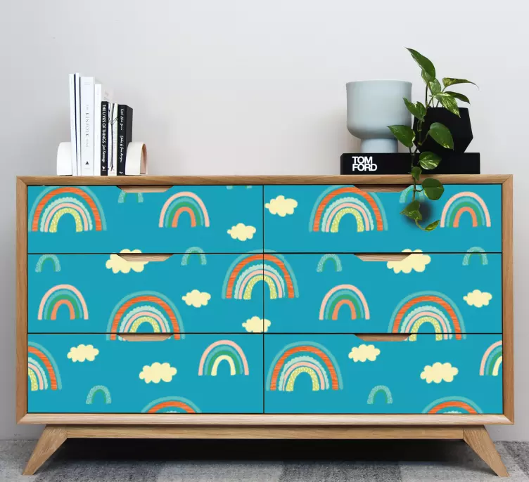 Vstúpte do sveta hravosti a farebných vzorov s našimi nálepkami na nábytok farebné dúhové vzory, ktoré sú navrhnuté tak, aby obohatili váš domov. Ich dizajn zahŕňa nádherné dúhy a roztomilé mraky, ktoré vytvárajú veselú atmosféru a premenia váš nábytok na rozprávkový kúsok. Tieto pestré vzory sú ideálne pre tých, ktorí chcú pridať do svojho interiéru štipku rozmarnosti a hravosti!
