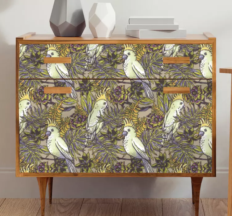 Vstúpte do sveta prírody s našimi nálepkami na nábytok inšpirovanými živými vtákmi, ktoré sú ako stvorené pre tých, ktorí milujú pestré a tropické vzory. S nádhernými motívmi papagájov, lístia a kvetov, tieto nálepky oživia váš nábytok a vnútorné prostredie. Každý detail bol starostlivo navrhnutý, aby priniesol do vášho domova atmosféru flóry a fauny, čím vytvorí jedinečný zážitok z esteticky príjemného prostredia.