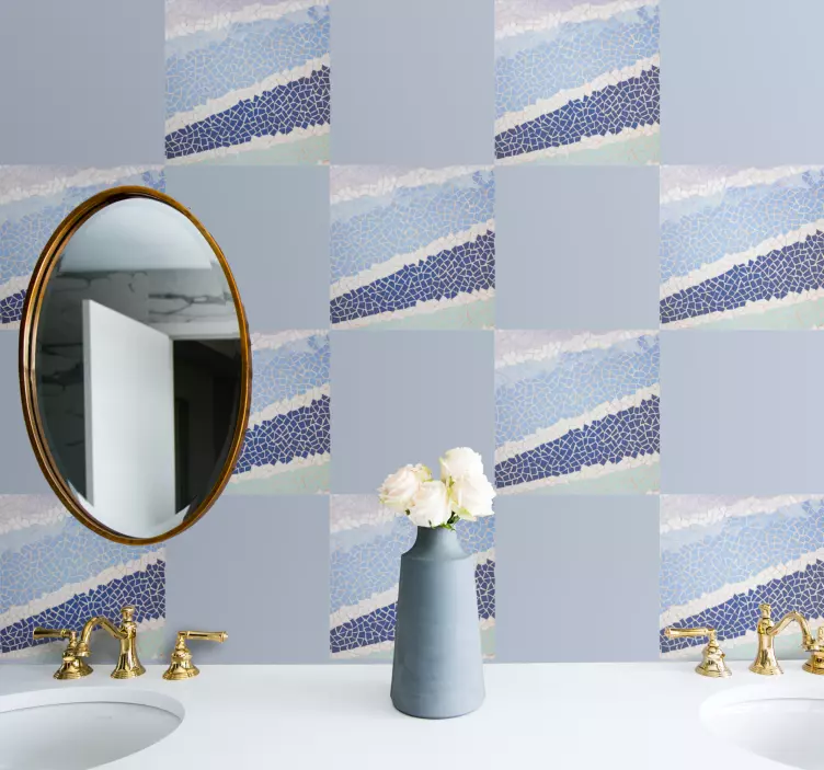 Naše nalepky na stenu zvierata abstraktný vzor mozaika sú navrhnuté s ohľadom na moderné trendy v interiérovom dizajne. Tento jedinečný grafický dizajn kombinuje modré tóny a geometrické tvary, ktoré pripomínajú dlaždice a mozaiky. Textúrovaný dizajn vytvára príjemný pocit vlny, ktorý oživí každý priestor a dodá mu štýlovú atmosféru.