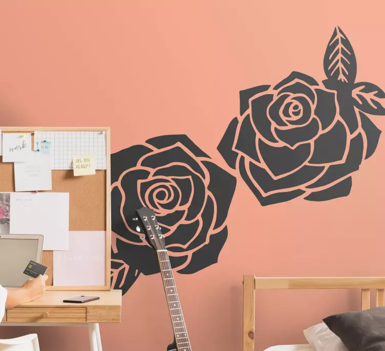 Objavte krásu našich nalepky na stenu zvierata chic ružový kytice, ktoré sú ideálnym spôsobom, ako oživiť každý interiér! Tento elegantný dizajn v sebe spája kvetinové motívy s nežnými siluetami ruží a listov, čím vytvára atmosféru prírody a harmónie. S ich čiernym pozadím sa kvetinové vzory vynímajú a dodávajú priestoru jedinečný šarm!