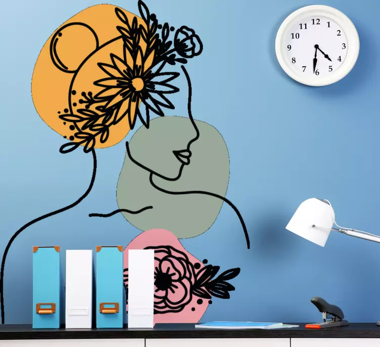 Naša nalepky na stenu zvierata elegantná ženská silueta sú dokonalým doplnkom pre každý moderný interiér. Graficky prepracovaný dizajn zobrazuje krásnu ženu s abstraktným čiarovým umením, ktorý je obklopený jemnými kvetmi. Tento minimalistický portrét osloví každého, kto hľadá jedinečné a elegantné dekorácie do svojho domova.