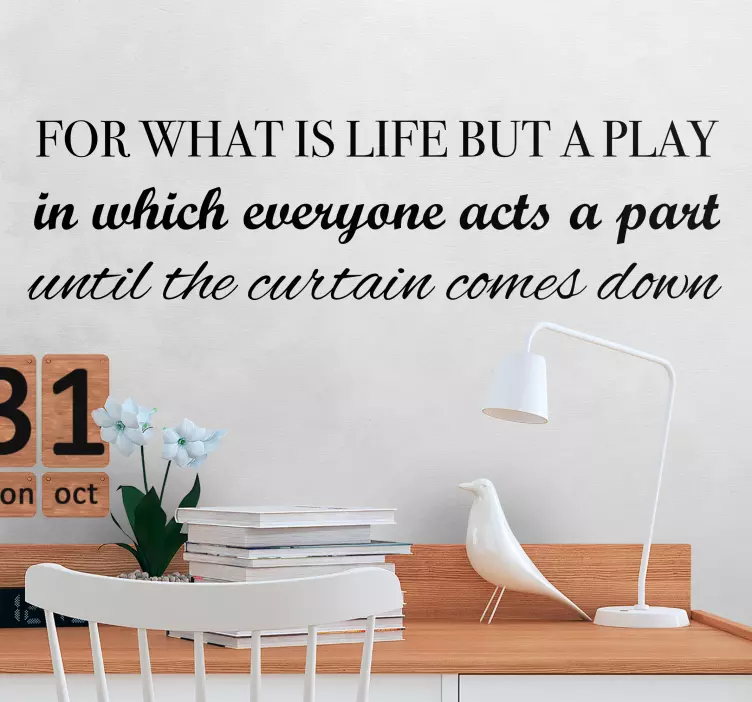 Referencia: A49740Myšlienka, ktorá vyvoláva zamyslenie, odráža predstavu, že život je podobný divadelnej hre, kde každý jedinec zohráva významnú úlohu až do konca. Táto správa povzbudzuje k oceneniu premenlivej povahy života a dôležitosti každého vykonaného činu.