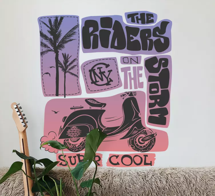 Referencia: A48088Kombinácia klasického skútra s palmami vytvára retro atmosféru. Hravá typografia pridáva neformálny nádych, naznačujúc uvoľnený životný štýl. Ideálne pre tých, ktorí ocenia vintage estetiku a radosť z objavovania nových ulíc.