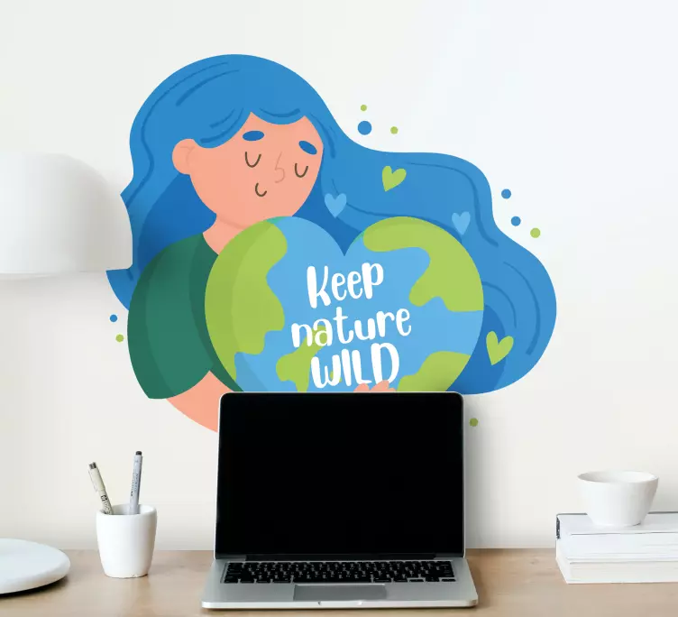 Referencia: A48040Reprezentácia zdôrazňujúca význam starostlivosti o našu planétu, rámovaná postavou, ktorá nežne drží srdcovú zemeguľu. Fráza povzbudzuje k záväzku zachovať divoké aspekty prírody, zdôrazňujúc lásku a spojenie so zemou.