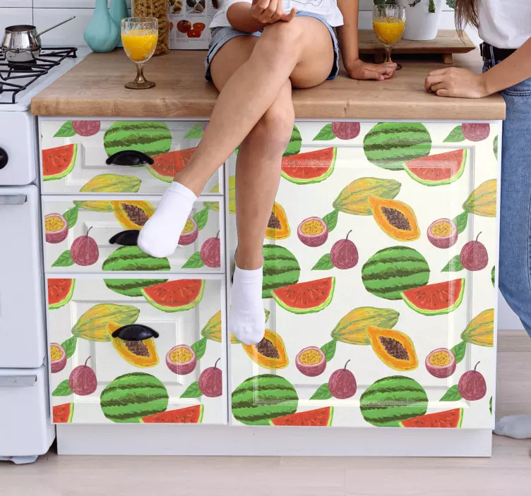 Referencia: A51355Živá kompozícia rôznych druhov ovocia, vrátane watermelon, papaya a passionfruit, vytvára pozývajúcu a veselú estetiku. Tento živý obraz zlepšuje atmosféru každej kuchyne, čím sa stáva príjemným a sviežim doplnkom do domácich interiérov.