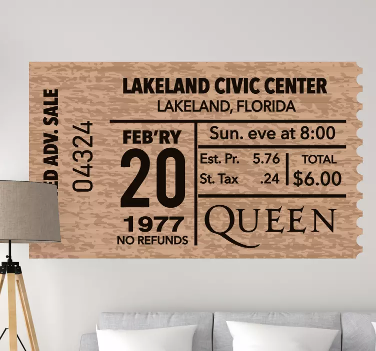 Referencia: A49733Vintage lístok z Lakeland Civic Center, ktorý obsahuje udalosť od Queen zo 20. februára 1977. Tento dizajn zdôrazňuje historický význam živých hudobných podujatí a zobrazuje detaily lístka ako miesto, dátum a ceny, čo oslovuje hudobných nadšencov a zberateľov.