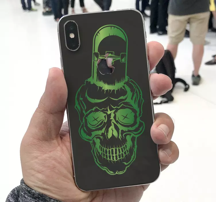 Urobte si svoj iPhone jedinečným s našimi nálepkami na stenu zvierata zelená lebka dizajn. Tento graficky pôsobivý dizajn obsahuje charakteristické prvky ako lebku a skateboard, obohatené o zelenú farbu, ktorá dodáva nálepke výrazný a osobitý štýl. Nechajte svoj telefón žiariť a vyjadrite svoju individualitu!