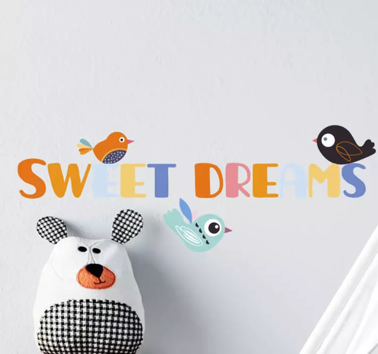 Referencia: A51016Živý výjav s veselými vtákmi zdobiacimi hravú frázu, ktorá nesie posolstvo pokojného spánku. Ideálne na oživenie detského priestoru, kombinácia farieb a postavičiek pridáva hravý nádych do každej miestnosti.