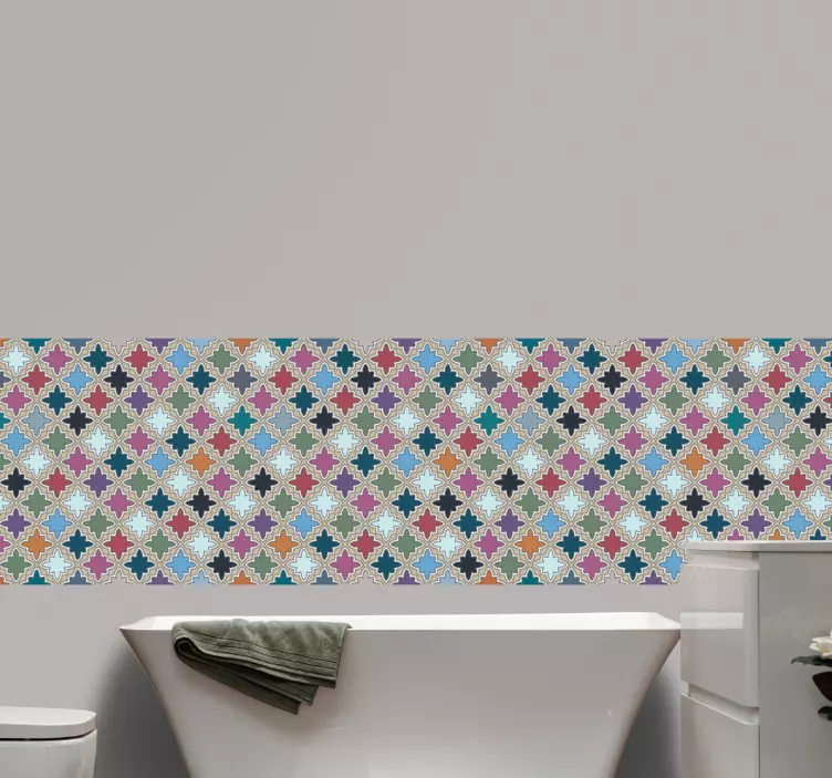Naša ozdobná nálepka farebné geometrické dlaždice je dokonalým spôsobom, ako oživiť váš interiér! S jej geometrickým dizajnom a pestrými vzormi sa stane skutočnou ozdobou každého priestoru. Hranice dlaždíc sú starostlivo navrhnuté tak, aby vytvorili harmonický a moderný vzhľad, ktorý osloví každého. Pridajte do svojich priestorov nádych kreativity a jedinečnosti s touto úžasnou nálepkou!