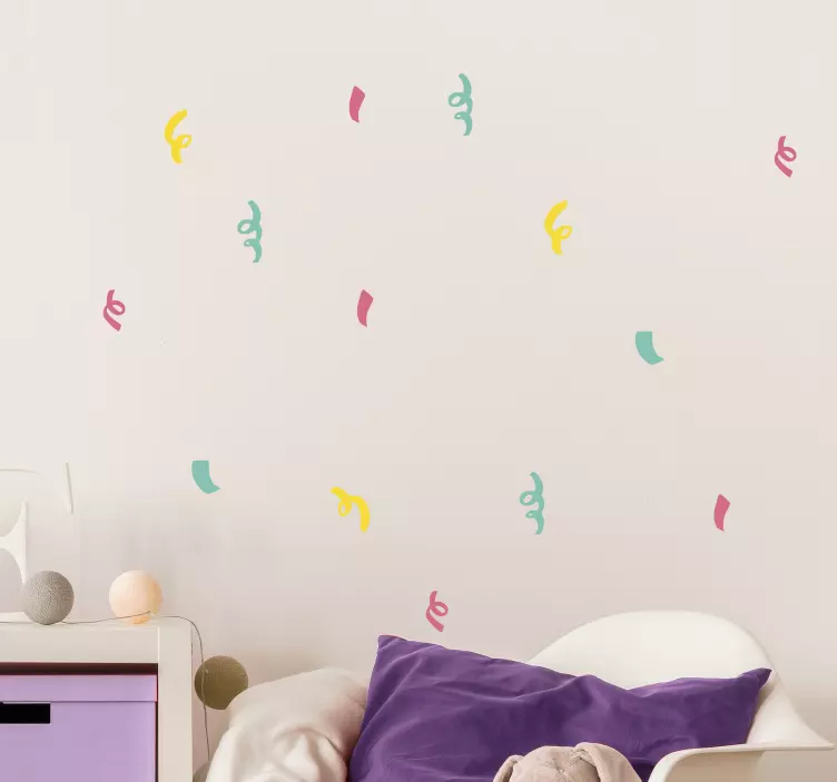 Vitajte vo svete hravosti a moderného dizajnu! Naša Ozdobná nálepka farebné zakrivené tvary je skutočným umeleckým dielom, ktoré kombinuje pestré a dekoratívne krivky, čím vytvára jedinečnú atmosféru vo vašich priestoroch. S dizajnom inšpirovaným konfety a skrútenými tvarmi, táto nálepka dodáva každému interiéru hravý a moderný vzhľad!