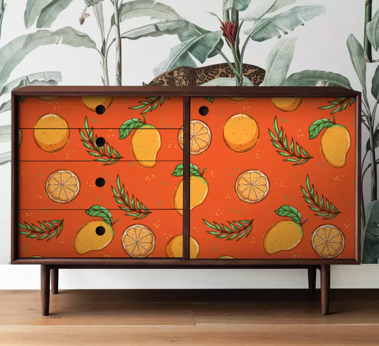 Ozdobná nálepka s citrusovým vzorom je skutočným skvostom pre váš interiér! Tento nádherný dizajn, ktorý kombinuje ovocie a listy, zahŕňa živé pomaranče a citróny, ktoré oživia každý priestor. Oranžové a pestré farby sú skvele kombinované s jemným kreslením, čo robí túto nálepku ideálnou pre dekoráciu nábytku a iných plôch. Svetlý a veselý vzhľad prináša do vášho domova šťavnatú atmosféru!