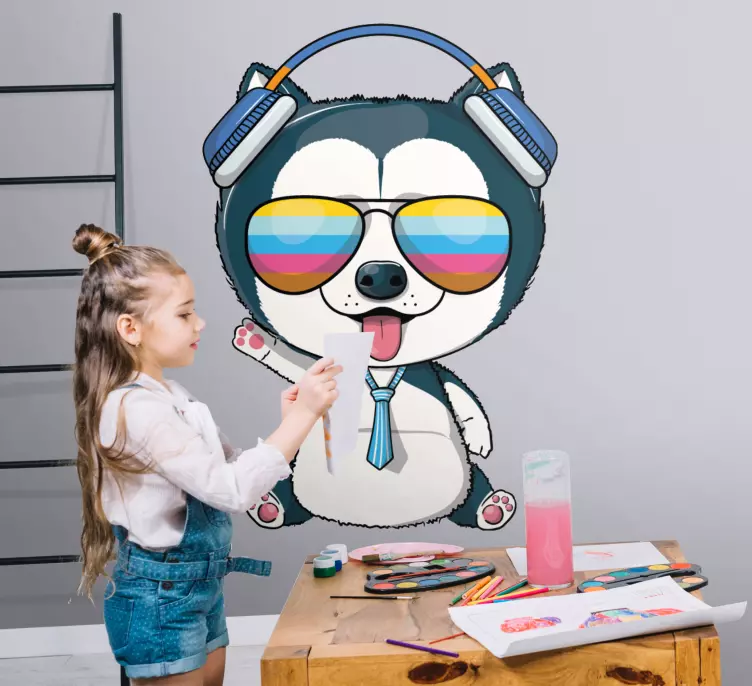 Roztomilá karikatúra husky šteňa ilustračná Nálepky na stenu