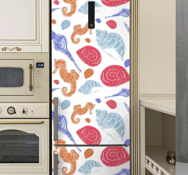 Naše samolepky na chladničku s morskými koníkmi a mušľami sú skutočným umeleckým dielom, ktoré oživí váš domov! Dizajn je inšpirovaný krásou mora a jeho fascinujúcim morským životom. Morské koníky a mušle vytvárajú pestrý a hravý vzor, ktorý dodáva vašej chladničke námorný a vodný nádych. S týmito samolepkami sa váš spotrebič stane stredobodom pozornosti a prinesie do vašej kuchyne atmosféru prázdnin pri mori!