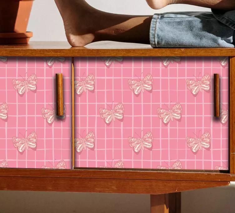 Naše samolepky na chladničku s ružovým motýlím vzorom sú dokonalým doplnkom pre váš domov! Dizajn je plný nádherných motýľov a elegantného kockovaného vzoru v jemnej ružovej farbe, ktorý skvele oživí váš nábytok a pridá na dekoratívnosti. Tieto unikátne samolepky sú skvelým spôsobom, ako vyjadriť svoj osobný štýl a pridať do vášho priestoru nádych radosti a farebnosti.