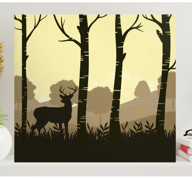 Objavte krásu prírody s naším obrazom jeleň v siluete medzi stromami, ktorý zachytáva jedinečný pohľad na voľne žijúce živočíchy v ich prirodzenom prostredí. Tento grafický dizajn zobrazuje majestátneho jeleňa obklopeného zeleniou trávou a lístím, pričom silueta je dokonale zasadená medzi stromami. Prírodné scenérie, kde sa zlúčila krása lesa s harmóniou prírody, vytvárajú ohromujúci vizuálny zážitok, ktorý oživí každý priestor!