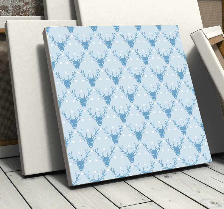 Predstavujeme Vám obraz jeleň zimný vzor jeleňa, ktorý zachytáva nádheru zimnej krajiny. Tento unikátny dizajn zobrazuje majestátne hlavy jeleňov a sobov, ktoré sa harmonicky spájajú s vianočnou atmosférou. Vzory sú vytvorené v jemnej modrej farbe, pričom ilustrácie sú obklopené snehom, čo dodáva obrazu eleganciu a sviežosť. Ak hľadáte dokonalý kúsok na dekoráciu svojho domova, tento obraz je tou pravou voľbou!