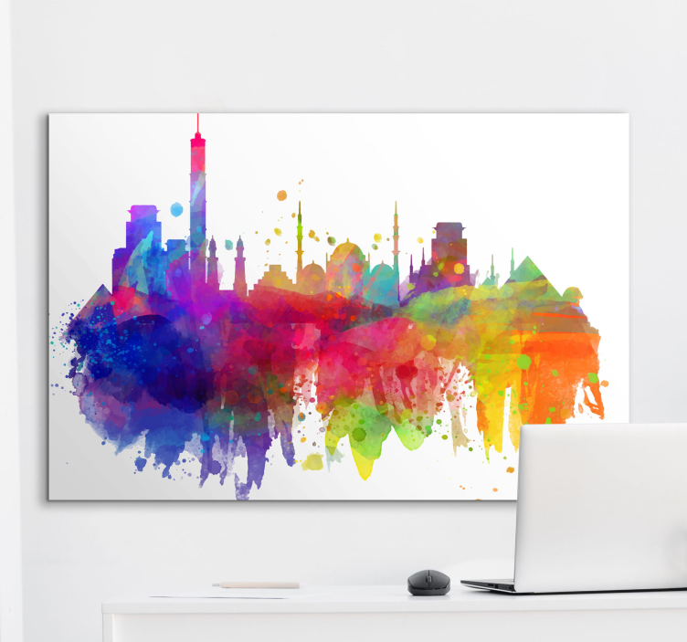 Obraz mesto farebný mestský horizont je unikátne umelecké dielo, ktoré zachytáva krásu moderného mesta. S abstraktným dizajnom a pestrými farbami, ktoré sa špliechajú na plátne, ponúka panorámu mrakodrapov, ktorá oživí každú miestnosť. Tento obraz je skvelou voľbou pre tých, ktorí hľadajú umelecké dielo, ktoré spojuje estetiku a kreativitu v jednom.