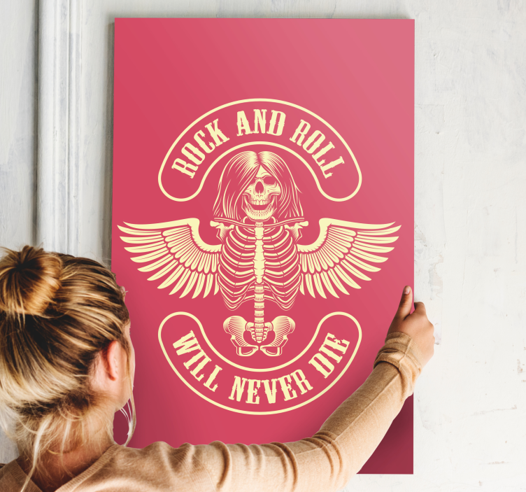 Referencia: Q8699Tento dizajn zobrazuje pôsobivú kostru s dlhými vlasmi a krídlami, ktorá stelesňuje podstatu rockovej hudby. Text zdôrazňuje trvalého ducha rock and rollu, čím vytvára odvážny vyhlásenie. So živou grafikou oslovuje milovníkov hudby a tých, ktorí ocenia vintage štýly.