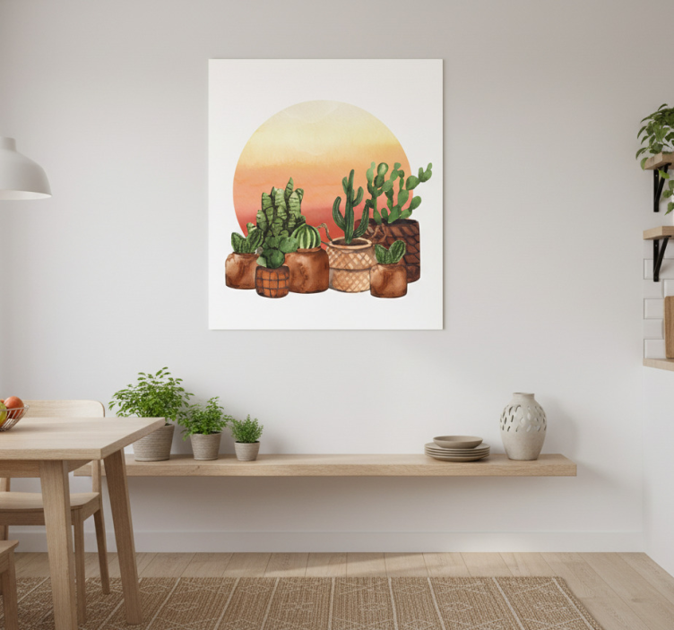 Ak hľadáte spôsob, ako oživiť svoj priestor, plagát na kuchyňu kaktus so západom slnka v kruhu je skvelou voľbou! Tento produkt nielenže poskytuje vizuálne potešenie, ale aj podnecuje kreativitu a pozitívne emócie. Farby západu slnka a zaujímavé tvary kaktusov sú ideálnym spôsobom, ako pridať do kuchyne nádych prírody a sviežosti. Nech už varíte alebo sa stretávate s rodinou a priateľmi, tento plagát bude vždy pozorným spoločníkom!