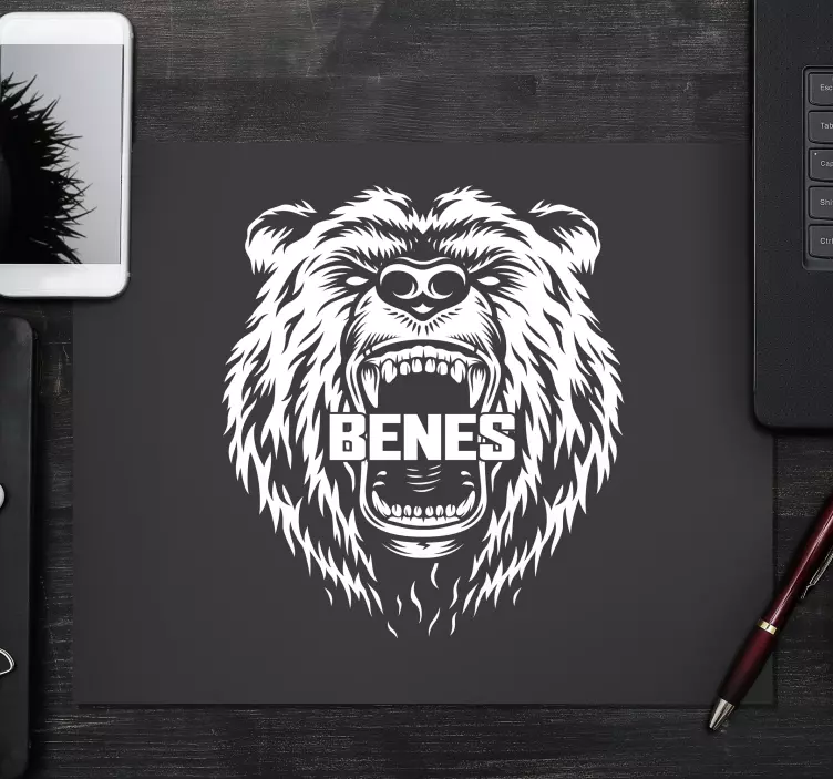 Podložka pod myš s medveďom a text pre milovníkov zvierat. Skvele sa hodí ku práci alebo hraniu v kancelárii a izbe. Na podložke pod myš je vyobrazená medvedia hlava v bielej farbe na elegantnom čiernom pozadí. Do popredia je možnosť pridať vlastný text. Môže to byť meno alebo značka. Podložka pod myš medveď a meno je vyrobená z vysokokvalitného vinylu, aby sme zaručili jej dlhú trvanlivosť. Farba tak skoro nevybledne. V prípade tejto podložky pod myš si nielen môžete doplniť svoj text, ale takisto máte možnosť zadať rozmer podľa svojich predstáv tak, aby perfektne zapadla na Váš stôl. Objednajte online!