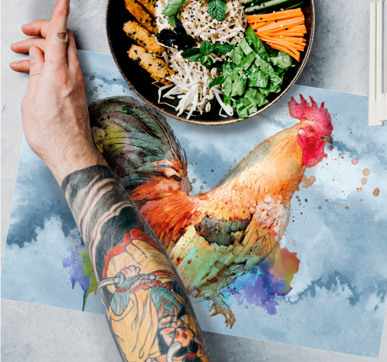 Informácie Akvarelový kohút na modrom pozadí textúrované vinylové prestieran