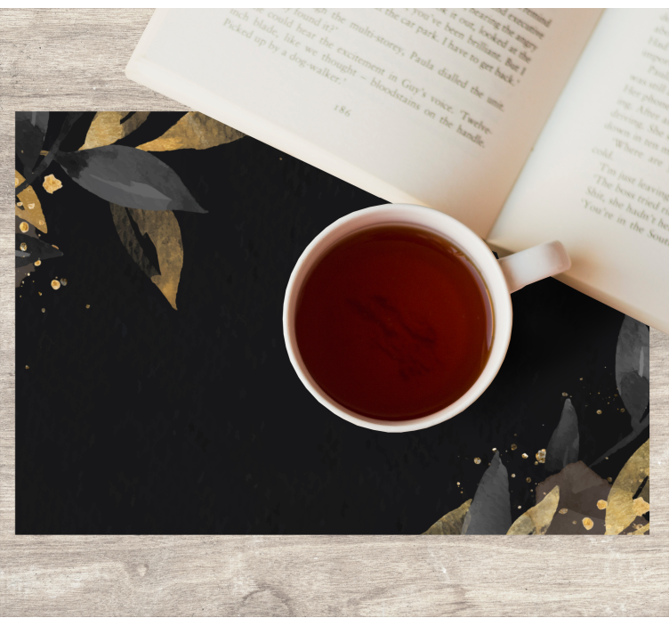 Elegantné prestieranie s rafinovanými listovými motívmi je skutočným umeleckým dielom, ktoré zaujme každého na prvý pohľad. Tento produkt vyniká svojím čiernym pozadím a zlatými akcentmi, ktoré sa harmonicky prelínajú s maľovanými listovými motívmi v akvarelovom štýle. Jeho minimalistický a sofistikovaný dizajn prináša do vášho domova eleganciu a pôvab, čím sa stáva ideálnym doplnkom pre každú modernú domácnosť.