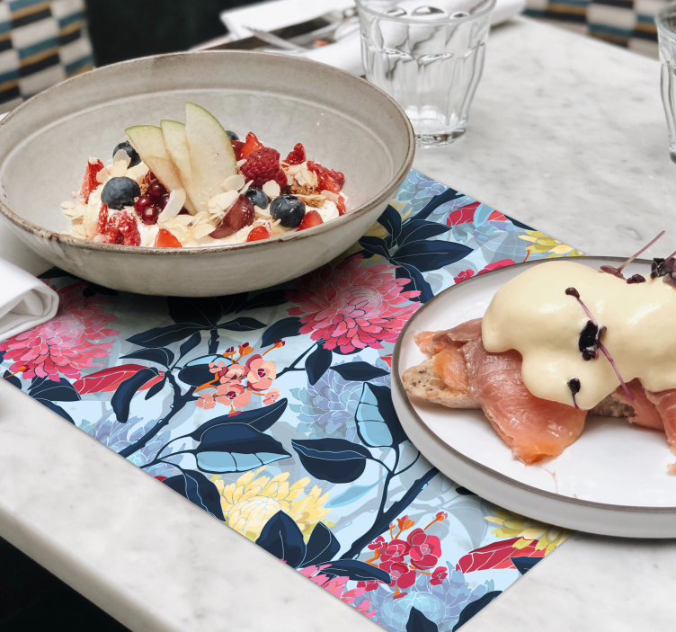 Vďaka svojmu jedinečnému dizajnu je Originálne prestieranie s kvetinovým vzorom elegance ideálnym doplnkom pre každú domácnosť. Pomáha vytvárať príjemnú atmosféru, kde sa rodina a priatelia môžu zísť pri stole. Jeho pestré farby a kvetinový vzor dokážu oživiť akýkoľvek priestor a pridať mu na elegancii. Vytvorte si nezabudnuteľné chvíle pri jedle s týmto krásnym prestieraním, ktoré oku lahodí a dodáva útulnosť!