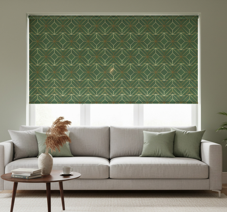 Moderná roleta metalicky zelené štvorce so zlatými obrysmi