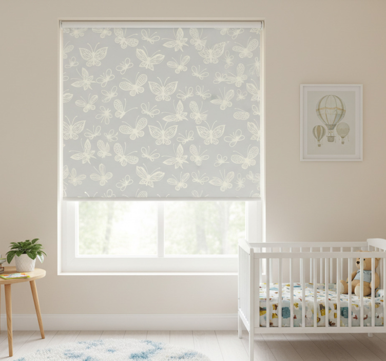 Roleta do detskej izby s bielym a šedým motýlikom