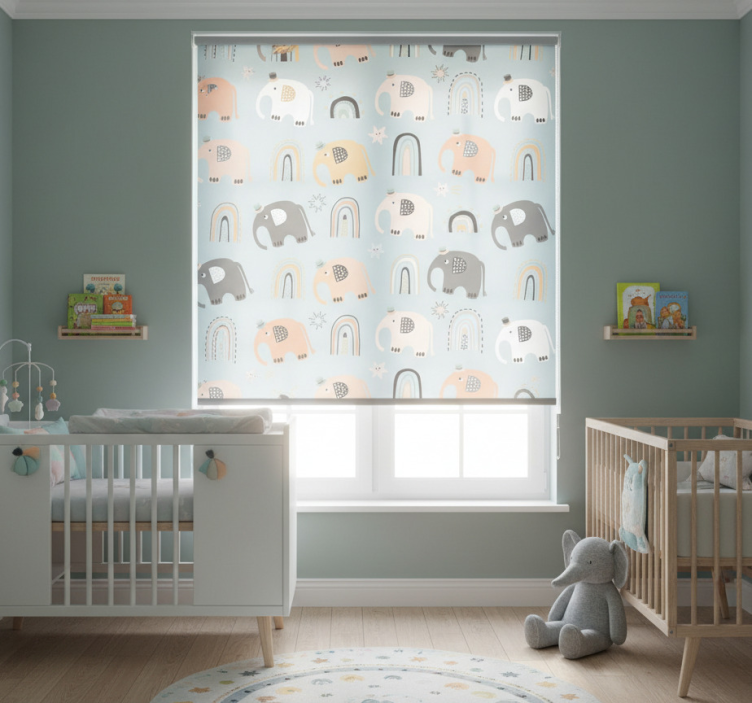 Roleta do detskej izby s motívmi slona a dúhy