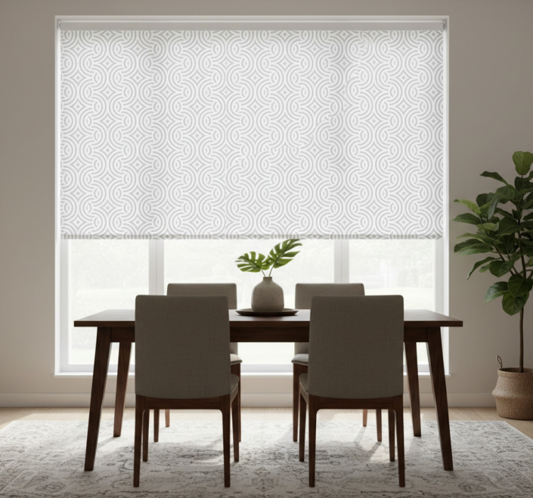 Roleta do jedálne s geometrickými špirálovými vzormi