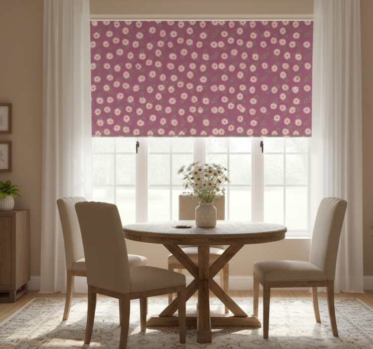 Roleta do jedálne s motívom malých ružových sedmokrások je ideálnym riešením na skrášlenie vášho interiéru. Pridaním tejto rolety do jedálne nielenže získa vaše okno zaujímavý vizuálny prvok, ale aj skvelú funkčnosť. Zabezpečuje ochranu pred priamym slnečným žiarením a zároveň ponúka súkromie, keď je potrebné. Je to skutočný dekoratívny prvok, ktorý dokáže zmeniť atmosféru miestnosti na príjemnú a útulnú, čo oceníte pri každej rodinnej oslave či romantickej večeri!