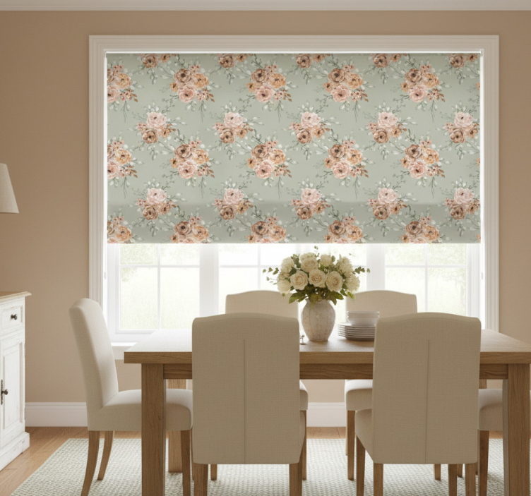 Roleta do jedálne s vintage ružami na mentolovom pozadí
