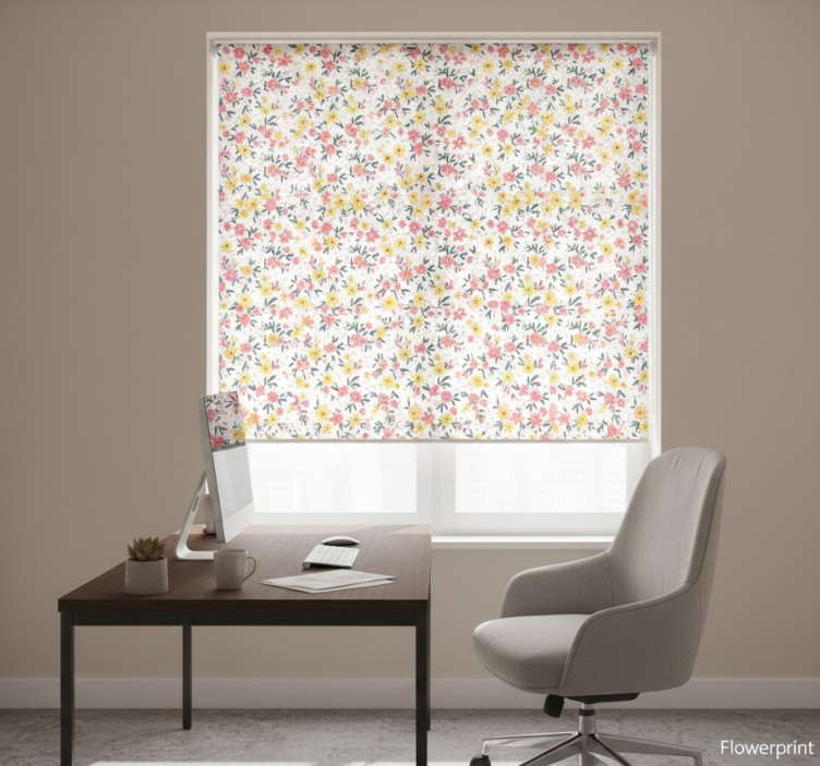 Roleta do kancelárie s kvetinovým vzorom ifuru biela